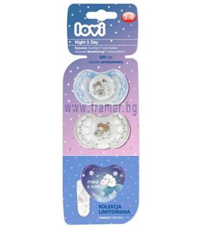 ЛОВИ КОМПЛЕКТ ДЕН И НОЩ КЛИПС + СИНИ ЗАЛЪГАЛКИ 3-6 месеца * 2 броя