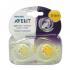 Описание: Авент пустышка : все Авент пустышки силиконовые. Все пустышки Авент силиконовые. Силикон без вкуса и запаха, и силиконовые пустышки имеют длительный срок службы и может быть лучше чистить, чем резиновые муляжи. Ночная пустышка имеет уникальный флуоресцентный кольцо.