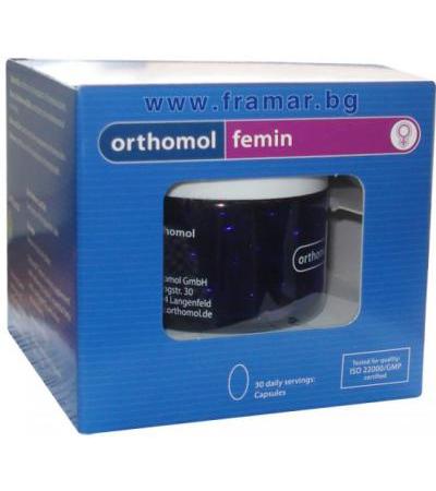 Ортомол Фемин является продукт для женщин в период менопаузы, который не содержит гормонов и специально разработанный на основе принципов ортомолекулярната медицина. Содержит изофлавоноиди из экстракт сои и лигнаны из семян льна, незаменимые жирные кислоты и коэнзим Q10 для функционирования легкой менопаузы, а также биотином для поддержания нормальной кожи и волос, и селеном для поддержания ногтей. Продукт снимает сопутствующие симптомы менопаузы, такие как приливы, нарушения сна, головные боли и колебания настроения. Способствует работоспособности и психического здоровья в критические возраста, оказывает положительное влияние на сердечно-сосудистую систему и обмен веществ в костях. Оптимальное сочетание витаминов, минералов и микроэлементами, захвата свободных радикалов и их обезвреждат, имеют антиоксидантное действие, что защищает клетки и укрепляющие иммунную систему.