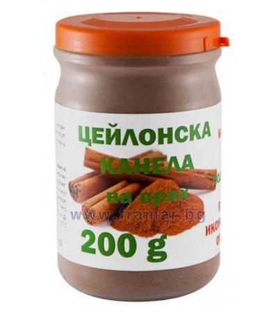 Цейлонската корица используется на протяжении веков в качестве кулинарной приправы и средства для лечения, почему комплексное воздействие на человеческий организм. Есть теплый и сладникаво - пряный вкус. Предпочтительным является перед Китайской корицы, так как содержит примерно в 1000 раз меньшее количество кумарин - вещество, токсичное для печени и почек. В 7 гр. (1 чайная ложка) цейлонска корица имеет 0,005 гр. кумарина. Допустимая доза для человека до 70 кг за 1 день 7 мг. Используется для подавления аппетита, контроль сахара в крови и при желудочно-кишечных проблем. Кроме того, очень полезным дополнением к лечению высокого кровяного.
