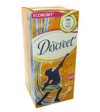 Самые тонкие ежедневные гигиенические прокладки Discreet summer fresh deo! С абсорбирующей сердцевины и тонкие концы, так что практически ее не чувствовать. Ароматизированные.