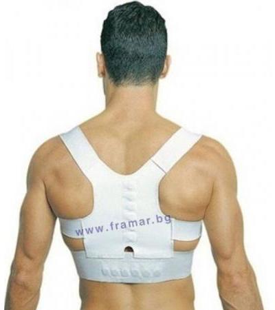 Ортопедический пояс для выпрямления спины. Исправить осанку плеч и спины в верхней части. Улучшает кровообращение в проблемных зонах с помощью магнитотерапията, которая осуществляется с помощью 12 магнита, расположенных на стратегически важных местах. Конец прегърбването и боль. Помогает для смягчения и стабилизации средней и верхней части спины и плеч. Изготовлен из дышащей ткани. Незаметен под одеждой.